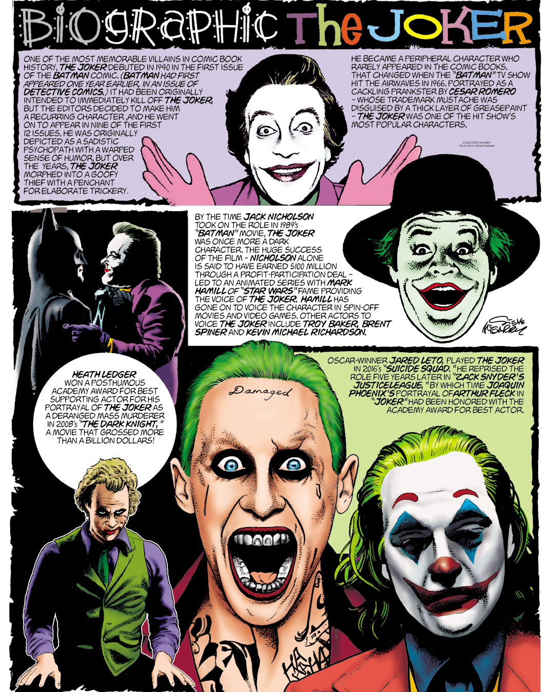 In my syndicated “Biographic” newspaper series, I took a look at the origins of The Joker in comic books and the actors who have portrayed the character onscreen.